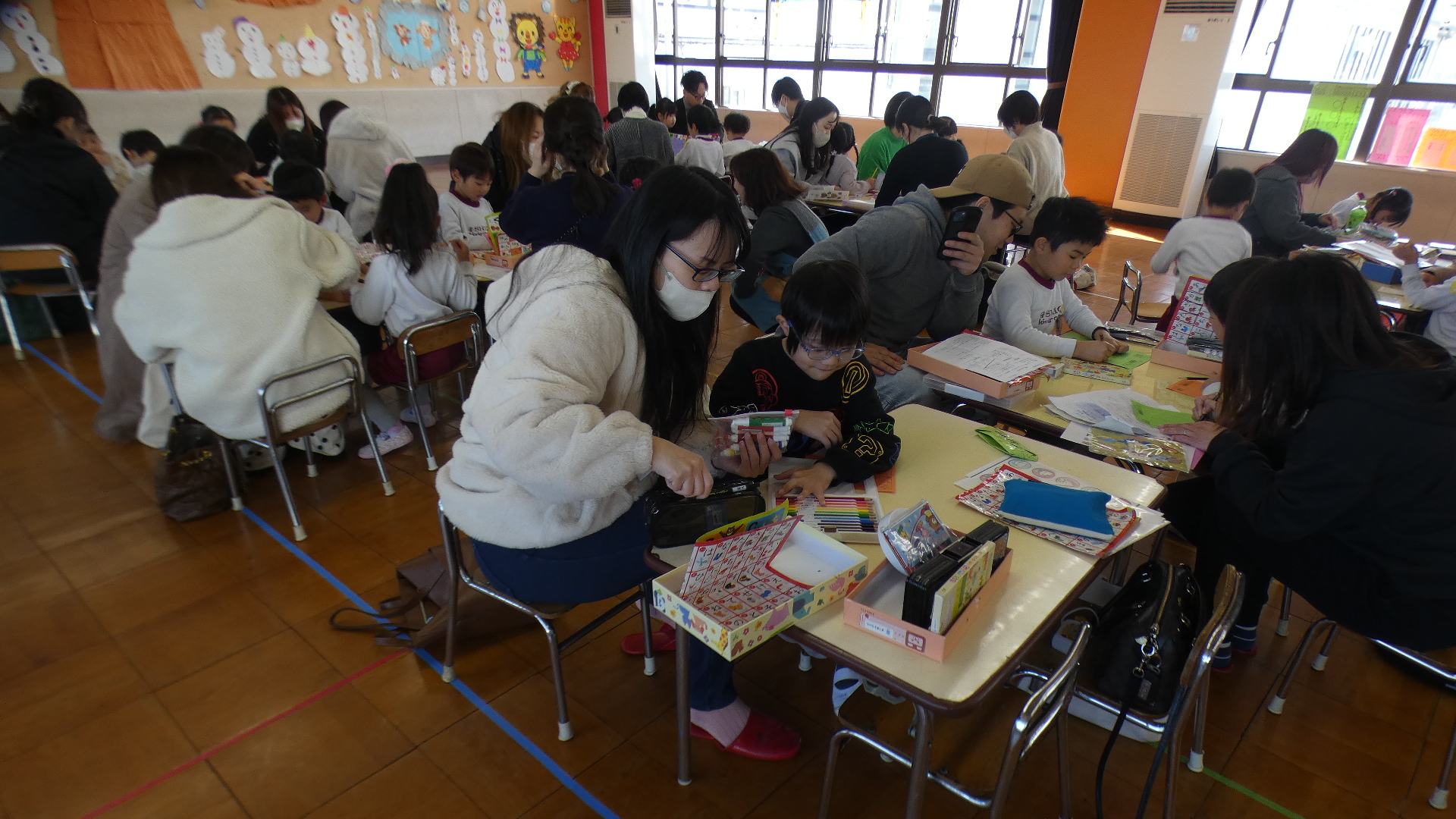 年長の『親子郵便屋さんごっこ』は書く・読むそして他者と関わる人間関係、音楽、数量(数とお金)など、幼稚園までに育てていきたい基礎の力をすべて網羅した活動でした。郵便局長さんも参観においでになり親子の楽しい郵便ごっこに感心していかれました。塗り絵を回収して帰られましたが、2月いっぱい各務原郵便局の窓(歩道から見えるところ)に掲示されるとのことです。