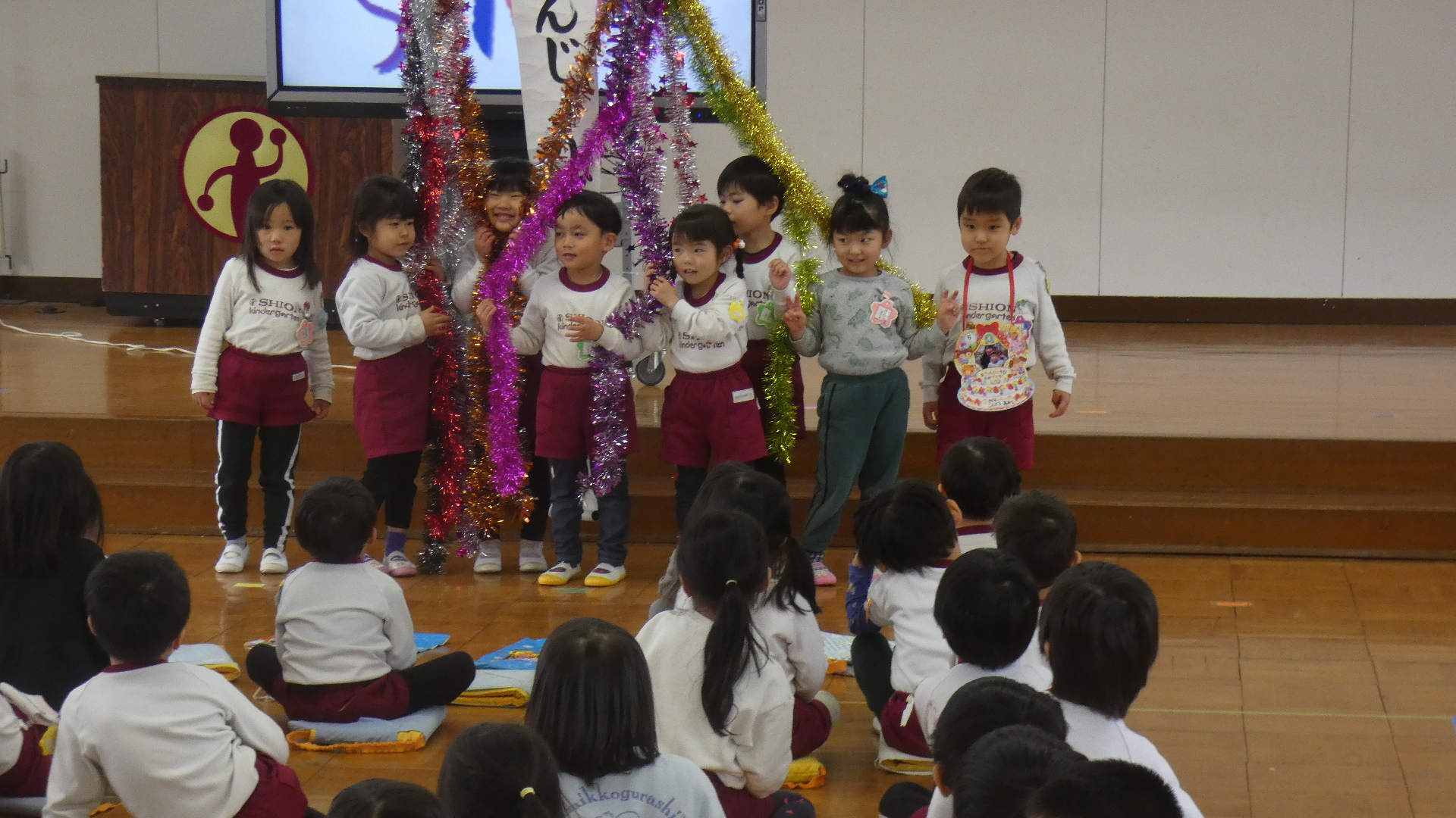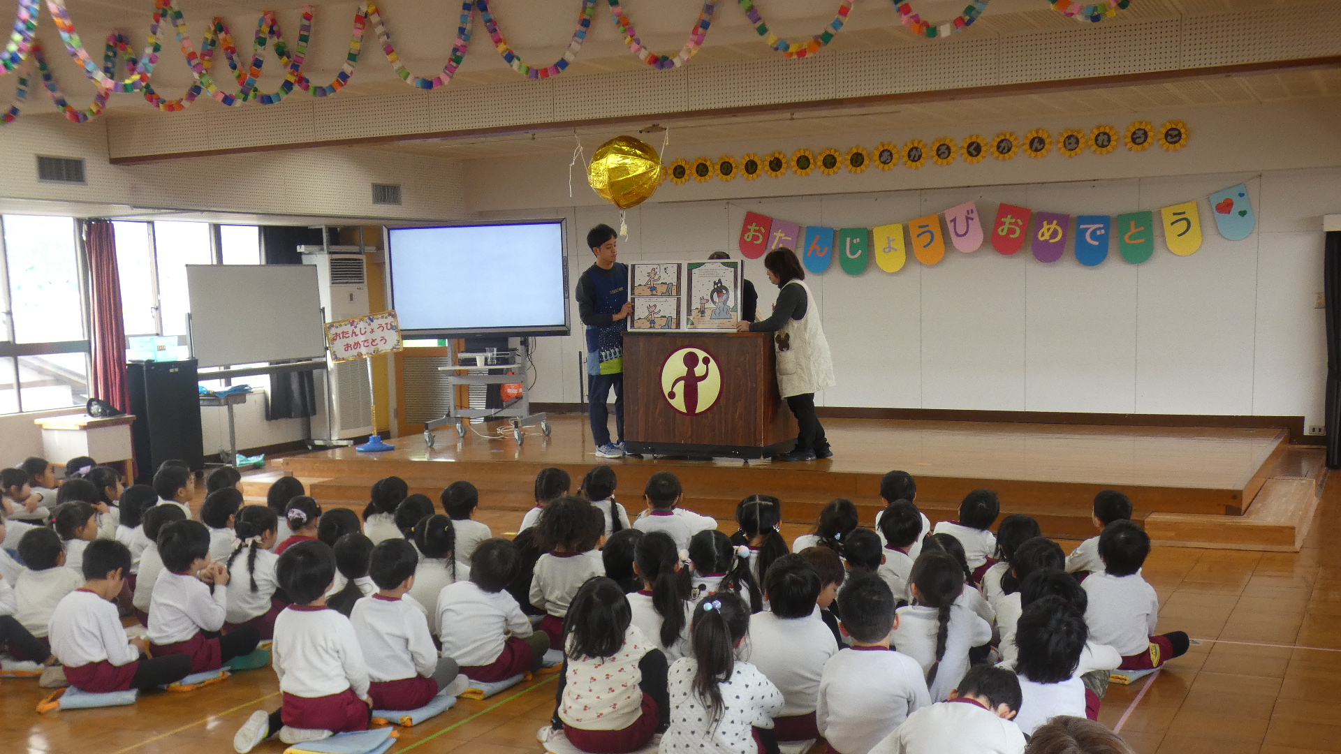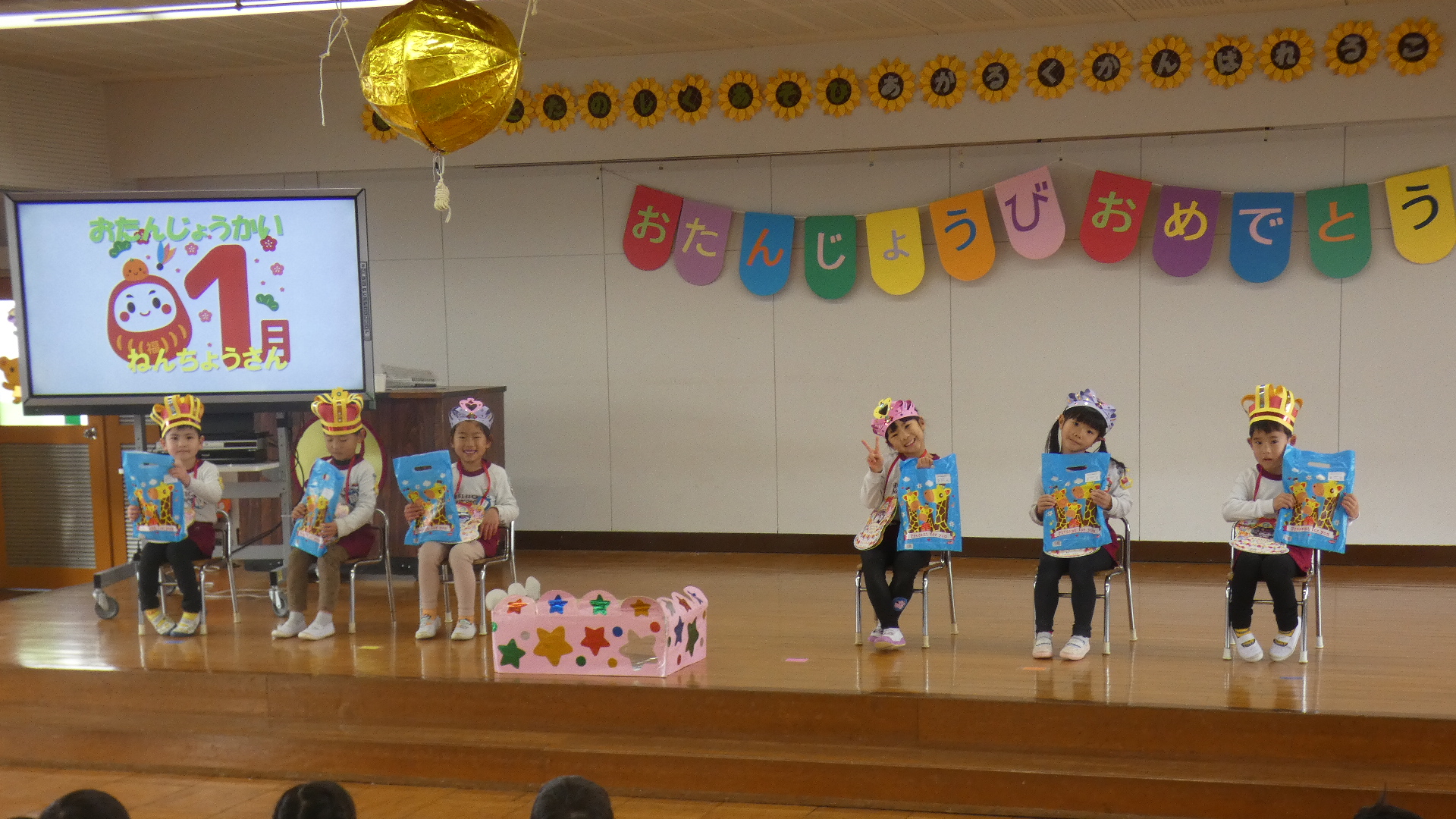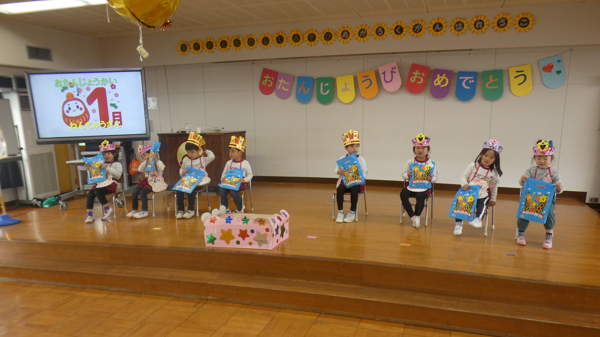 さて、今日は1月の誕生会!年少・年中・年長と3部に分けての開催です。