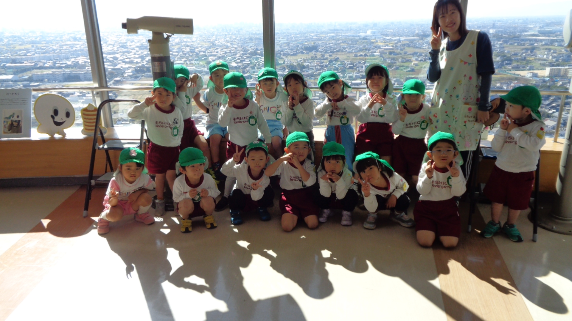 秋晴れの中、幼稚園バスに乗って年少さんとつくしさんが「一宮タワー138」に遠足に行きました。