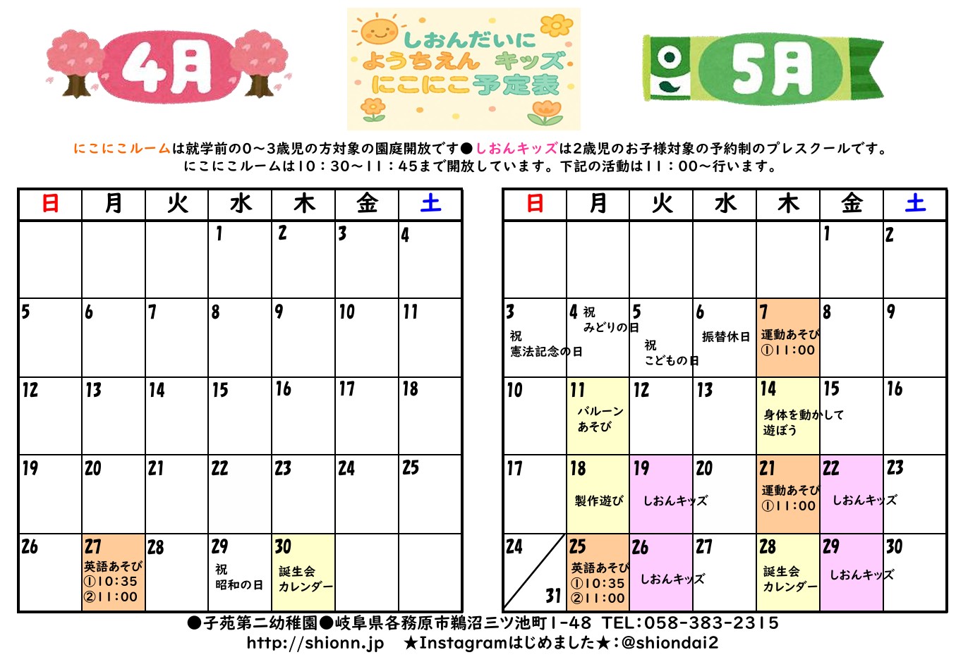 にこにこルーム(幼稚園開放)がスタートします!